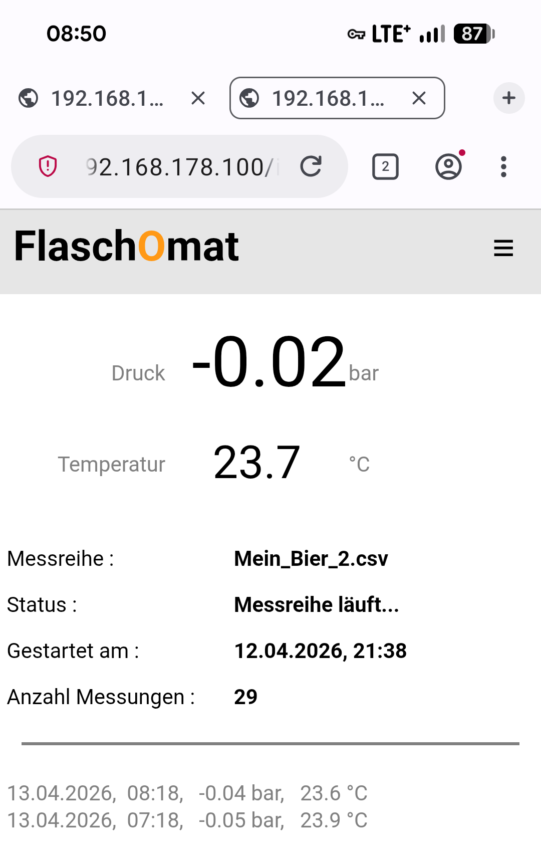 Der FlaschOmat hat weder Tasten noch ein Display, sondern verbindet sich stattdessen mit dem heimischen WLAN. Der Braumeister kann dann vom Wohnzimmersessel aus mit dem Handy oder PC die Daten abrufen und sich ein Bild vom Zustand seiner Nachgärung machen. Das funktioniert nicht nur im eigenen WLAN, sondern per VPN von überall aus. Mit dem FlaschOmat hast du also den aktuellen Zustand deiner Nachgärung im Blick. Einfach per Maus- oder Fingertipp, immer und überall.
