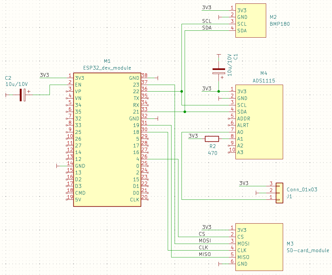 Der letzte Schritt ist das Kürzen und Anschließen des Drucksensors. Er wird mit einem ca. 30 cm langen Anschlusskabel mit drei offenen Litzen geliefert. Da es ein aktiver Sensor ist (also mit eingebauter Elektronik), benötigt er eine Betriebsspannung von 3,3 V.