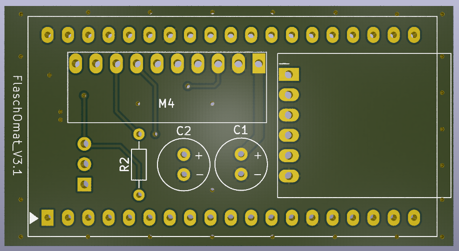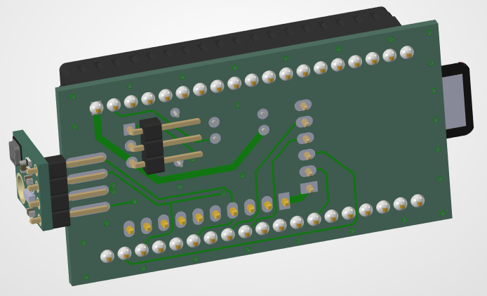 Hier schließlich noch ein Blick auf die Unterseite der Platine. Hier gibt es – etwas abgesetzt von der Hauptplatine – noch ein Modul, das den Temperatur- und Luftdrucksensor enthält. Der kleine 3-polige Stecker rechts davon stellt nachher die Verbindung zwischen Drucksensor und Elektronik her.